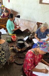 Batik Lasem artisans have long struggled to visualize how their hand-drawn fabrics—especially pagi sore cloths with two different motifs on the left and right sides—can be turned into modern garments. This challenge often limits production to jarik (long cloths), reducing opportunities for product diversification and market expansion. Buyers frequently ask how such fabric can be made into a top, but without patternmaking skills, artisans hesitate to cut the cloth for fear the motifs will look unbalanced or lose harmony. To address this, a community development program was carried out with Pembatikan Pesona Canting in Karas Kepoh Village, Lasem. Since 2023, the mentoring has introduced artisans to motif development, patternmaking, and ready-to-wear design, giving them tools to transform batik fabric into wearable pieces without compromising motif integrity. The motif development process combined Design Thinking and Participatory Rural Appraisal (PRA). Artisans were actively involved in observing local inspiration sources, sketching motifs, refining designs, and producing new batik using these concepts. The facilitator acted as a guide, ensuring artisans were not passive recipients but co-creators of the design, encouraging sustainable and community-driven innovation.